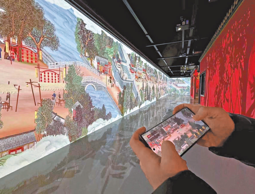 观众可在现场通过互动设备“一键入画”京师万象图,沉浸式赏览。