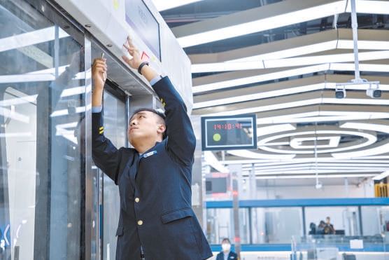 地铁工作人员进行培训。