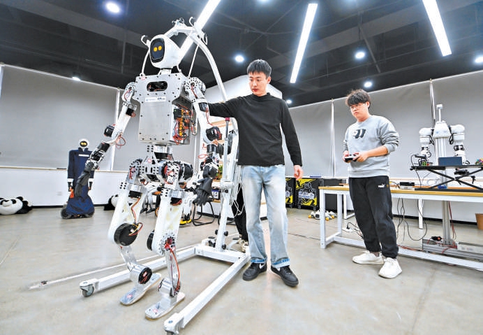 2月27日,在位于天津滨海高新区的天津木牛流马科技发展股份有限公司,工作人员对一款具身机器人进行测试验证。作为国家自主创新示范区,天津滨海高新区近年来前瞻布局脑机接口、细胞与基因治疗、具身智能等未来产业,聚集了一批高能级创新平台和众多创新型企业。