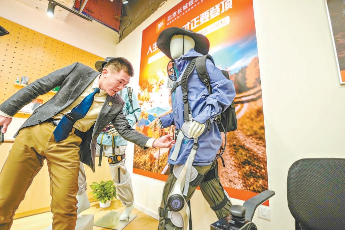 64岁的樊大爷专程来到门店选购功能辅助商品。他套上背心,固定好膝关节和髋关节,试着走了一段路。“省劲儿多了,上楼梯有助力,下楼梯还能防前倾,真厉害!”他说,之前逛展会时就想体验外骨骼机器人,但排不上队。在这家门店能一站式体验各类智能产品,直观感受科技助力生活。